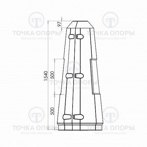 В нижней части цоколя находится лючок для обеспечения доступа к электропроводке осветительного комплекса.