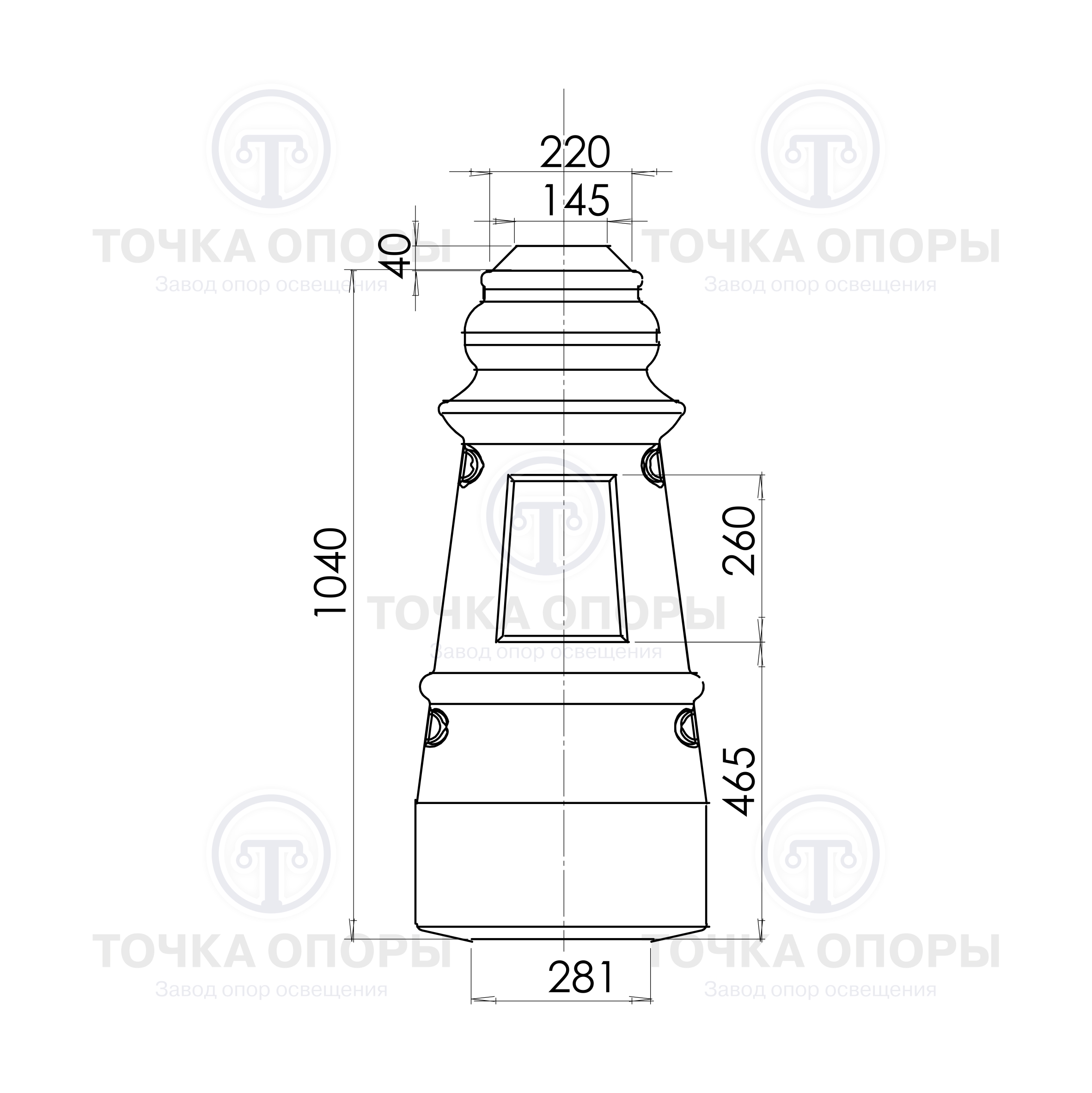 Цоколи без граней служат для оформления основания трубчатых опор освещения и парковых фонарей. Они обеспечивают защиту технических элементов, проведенных к опорам внутренним (подземным) путем, таких как электрические кабели и соединительные элементы. Цоколи позволяют защитить место крепления опоры освещения к закладной детали от внешних воздействий.