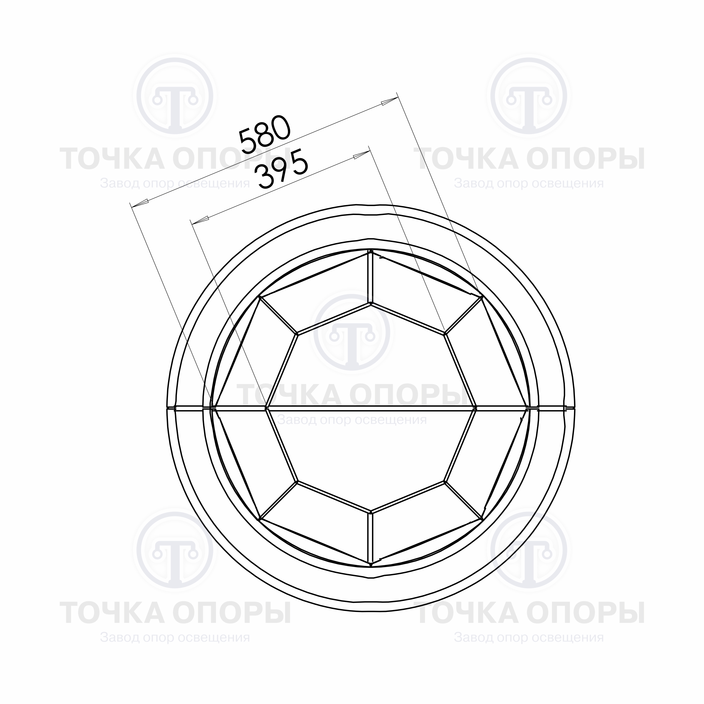 Верхний диаметр: ⌀ 395-580 мм.