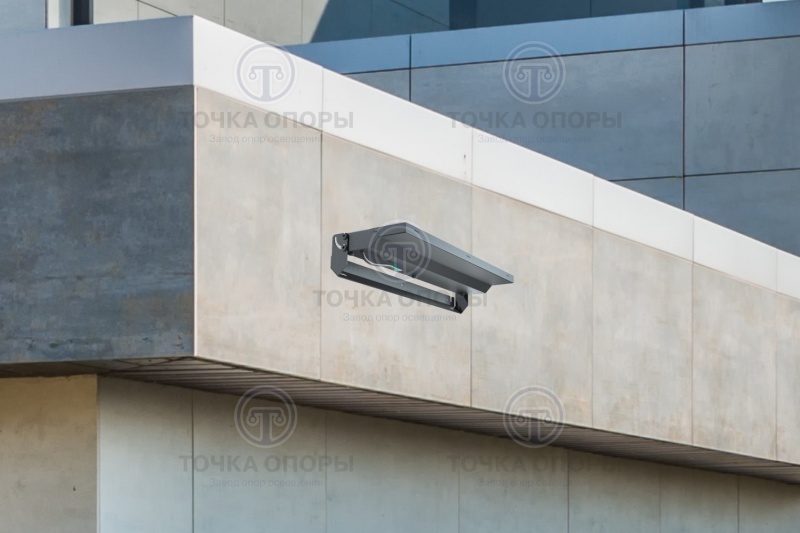 Архитектурные светильники P5 pro 2-1 устанавливаются на фасады зданий. Крепление осуществляется с помощью метизов. Узел наклона для архитектурного светильника P5 pro 2-1 регулируется, скоба позволяет перемещаться под углом 90°.