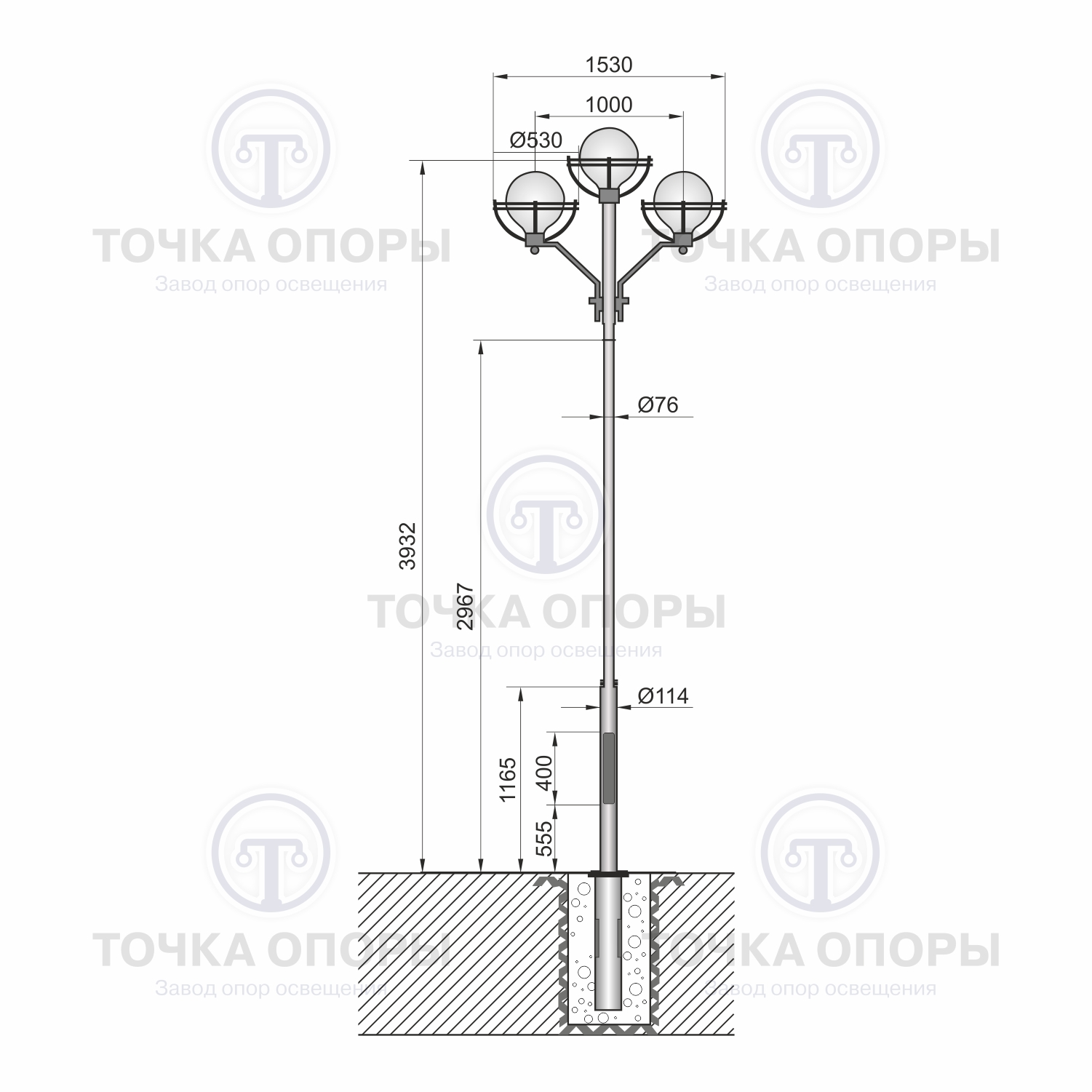 Декоративные опоры освещения «Бол» могут использоваться для монтажа от 1 до 3 светильников.