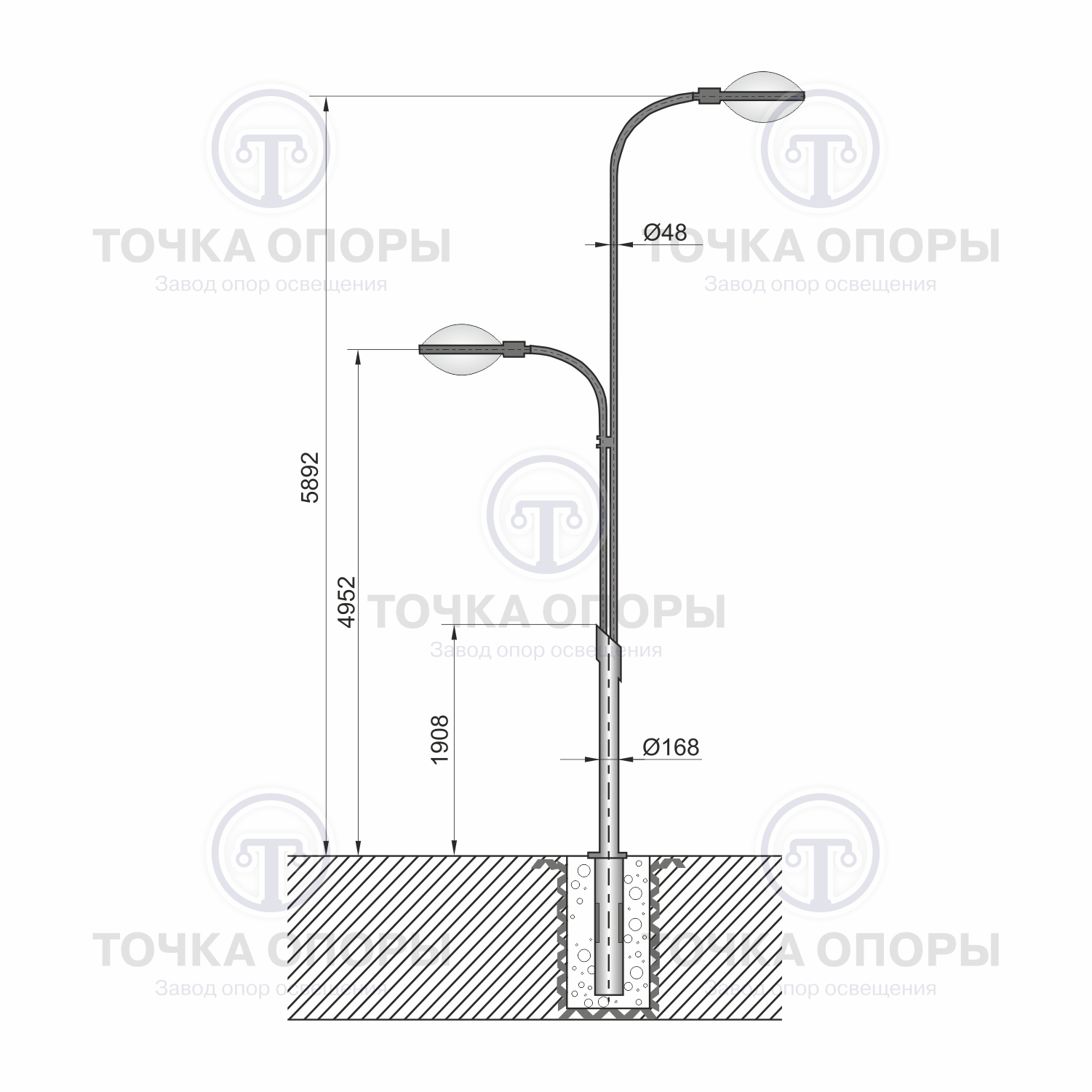 На опору устанавливаются светильники с диаметром посадочного отверстия D=48 мм. Возможно применение как светодиодных светильников, так и традиционных моделей.