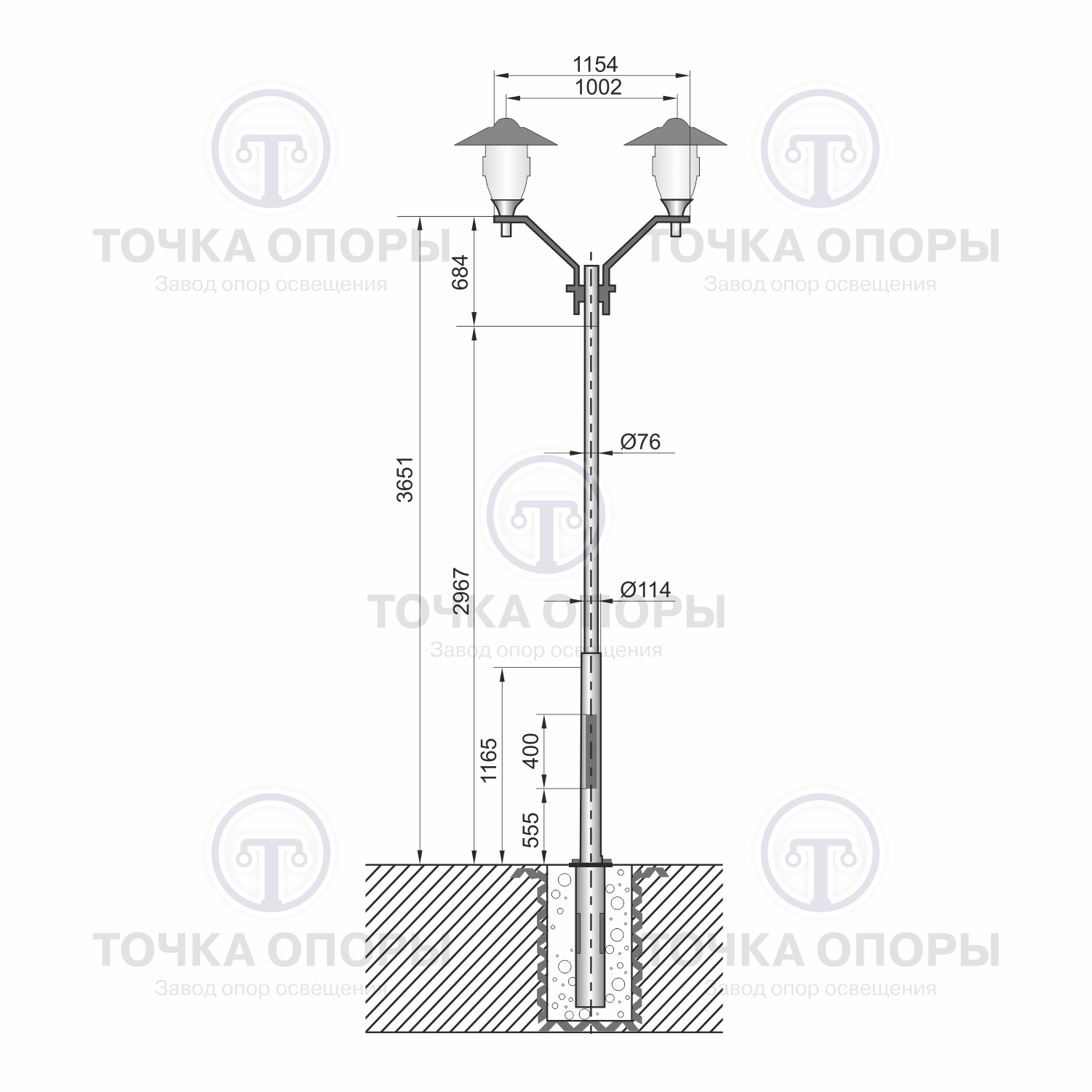 На опору устанавливаются торшерные светильники. Возможно применение как светодиодных светильников, так и традиционных моделей.