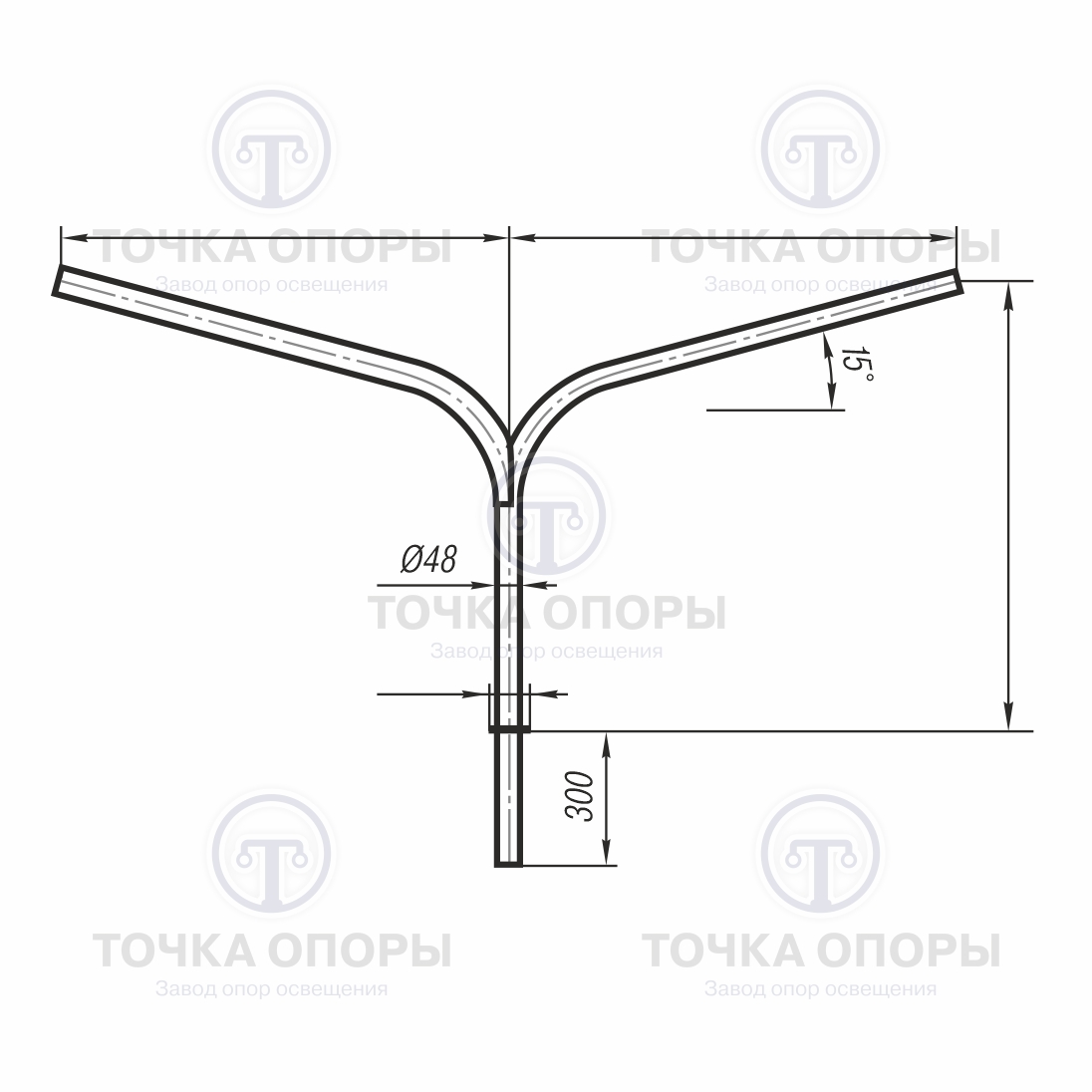 Завод опор освещения «Точка опоры» изготавливает двухрожковые консольные кронштейны из стального проката. Собственное производство позволяет выполнять изделия надлежащего качества и в кратчайшие сроки.