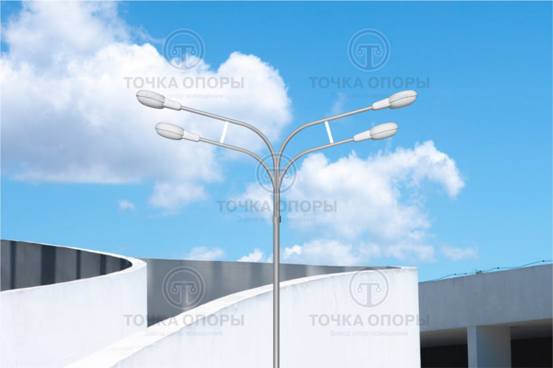 Завод опор освещения «Точка опоры» изготавливает четырехрожковые консольные кронштейны из стального проката. Собственное производство позволяет выполнять изделия надлежащего качества и в кратчайшие сроки.