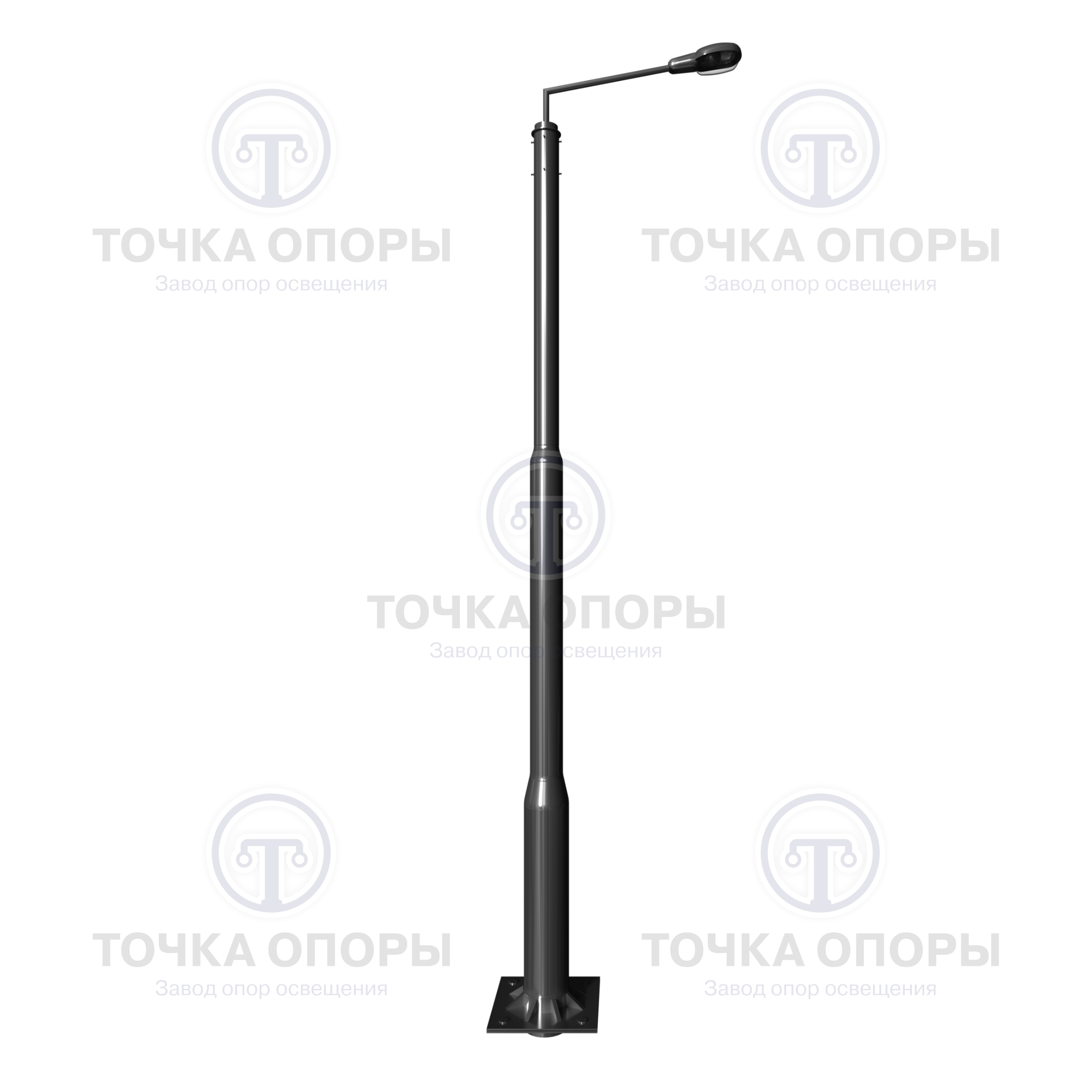 Полный комплект для организации наружного освещения, помимо опоры, включает закладную деталь, цоколь (несет декоративную функцию, не обязателен к установке), кронштейн и светильники.