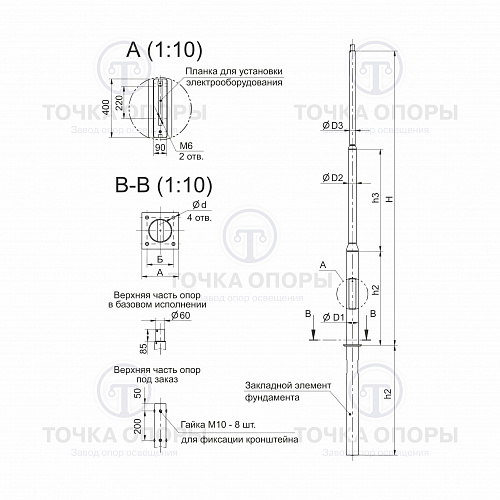 На заводе опор освещения «Точка опоры» Вы можете заказать производство опор НФ-21 как по типовым конструктивам, так и по индивидуальным чертежам.