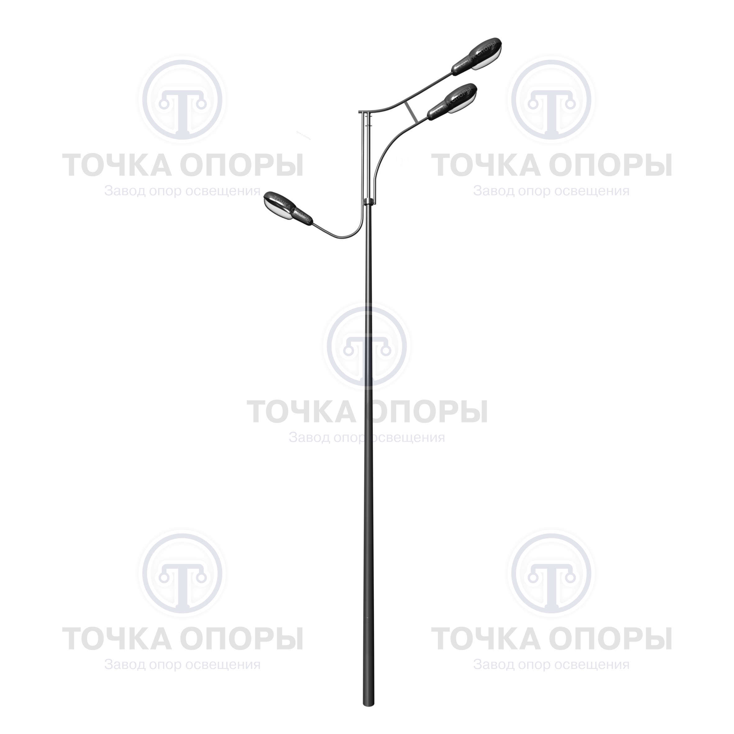 Полный комплект для организации наружного освещения, помимо опоры, включает цоколь (несет декоративную функцию, не обязателен к установке), кронштейн и светильники.