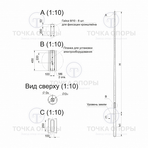 Подробнее о монтаже прямостоечных опор освещения читайте в разделе Монтаж.