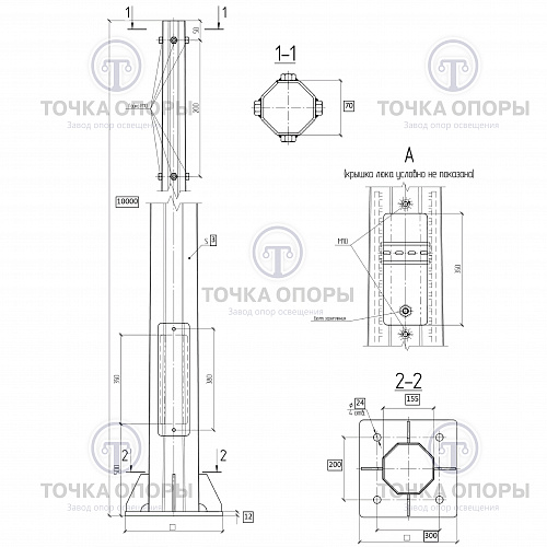 Комплектация: опоры поставляются с метизами, закладной деталью фундамента, кронштейном и светильниками.