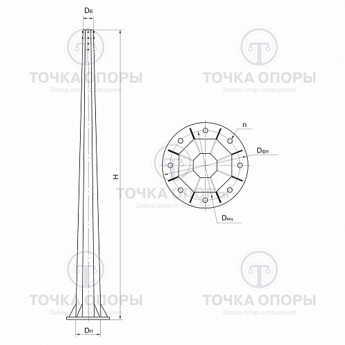 ОГКСф-1000-9,0 – опора граненая коническая силовая фланцевая предназначена для организации наружного освещения.
