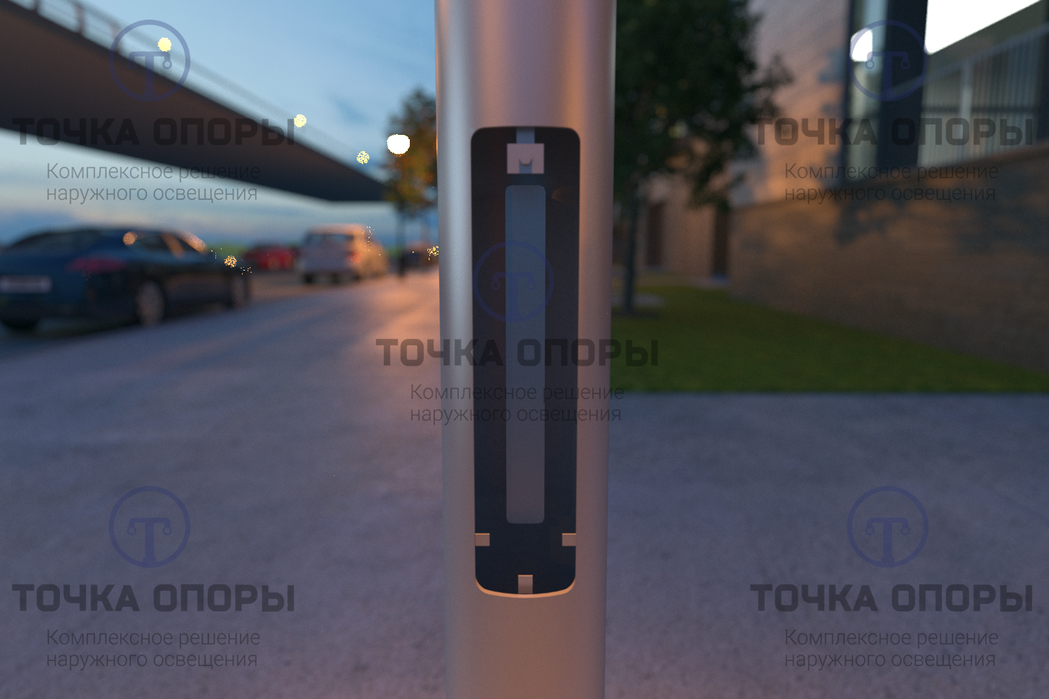 Подвод питающего кабеля допустим только подземным способом, обслуживание происходит через специальный лючок, расположенный в нижней части опоры освещения.