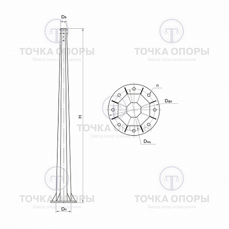 На заводе опор освещения «Точка опоры» Вы можете заказать производство силовых опор как по типовым конструктивам, так и по индивидуальным чертежам.