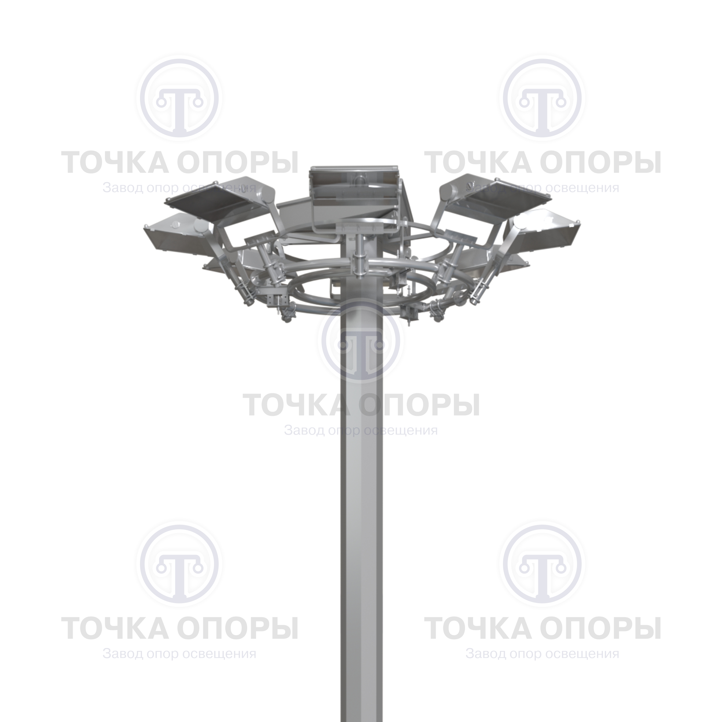 Одна мачта BMO-40 может заменить до 10 стандартных опор освещения, так как позволяет разместить мощные осветительные приборы на большой высоте. В зависимости от количества прожекторов, проектируется корона. Мобильная корона, как и сама мачта освещения ВМО, способна выдерживать значительные нагрузки и воздействие внешних факторов.