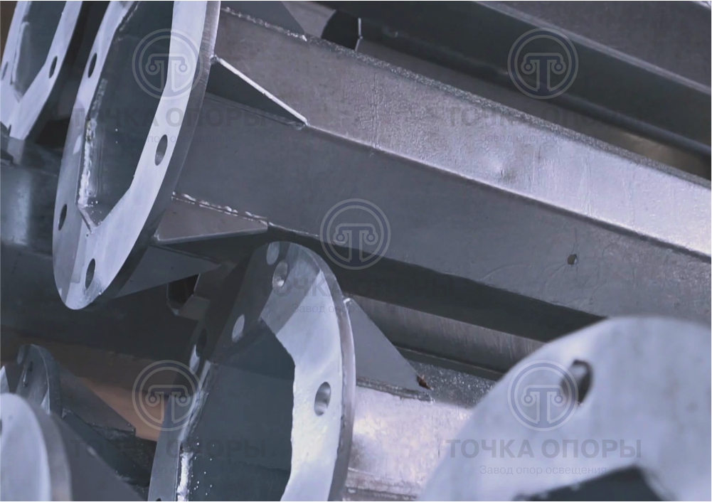 Вне зависимости от вида опор освещения (граненые, круглоконические, трубчатые), согласно ГОСТу, они покрываются горячим цинком, так как это гарантирует максимальный срок службы и защиту от коррозии.