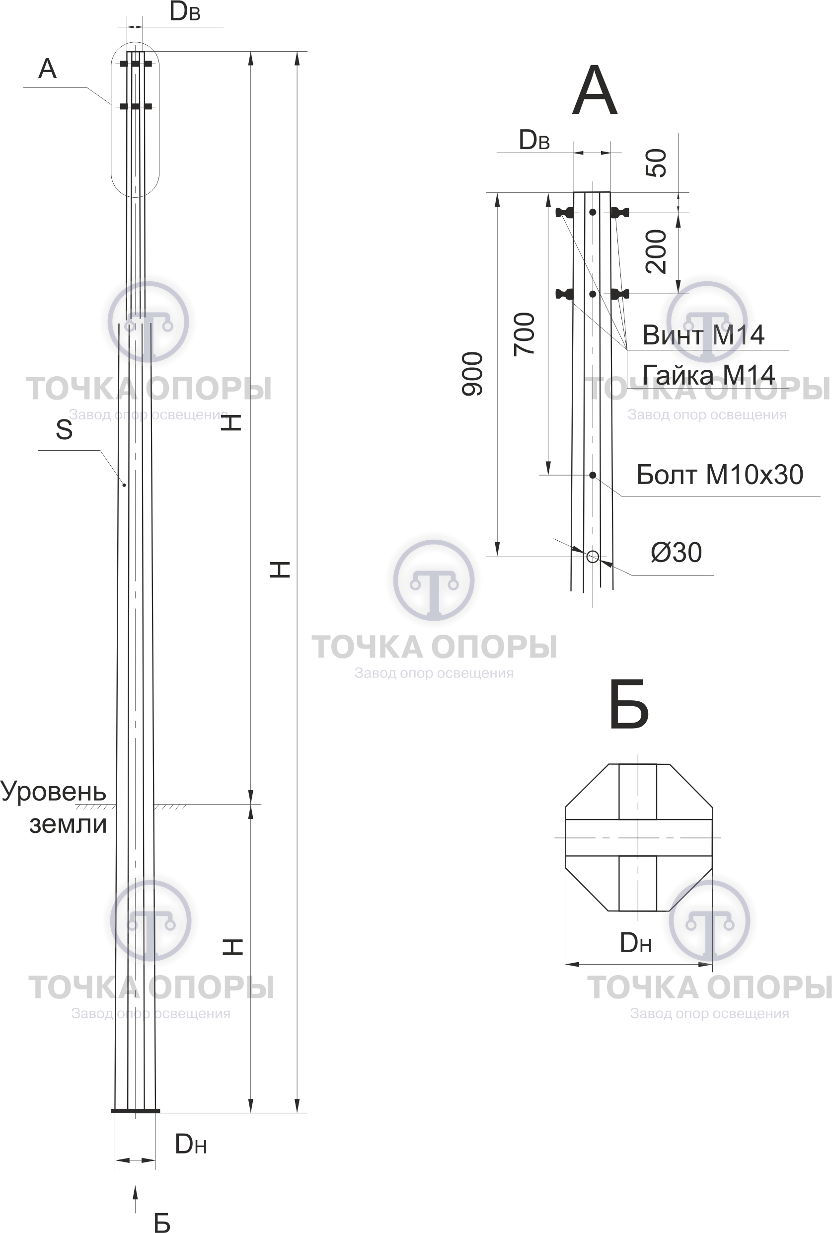 Прямостоечные опоры освещения устанавливаются в котлован, с последующей заливкой бетоном. Глубина котлована в