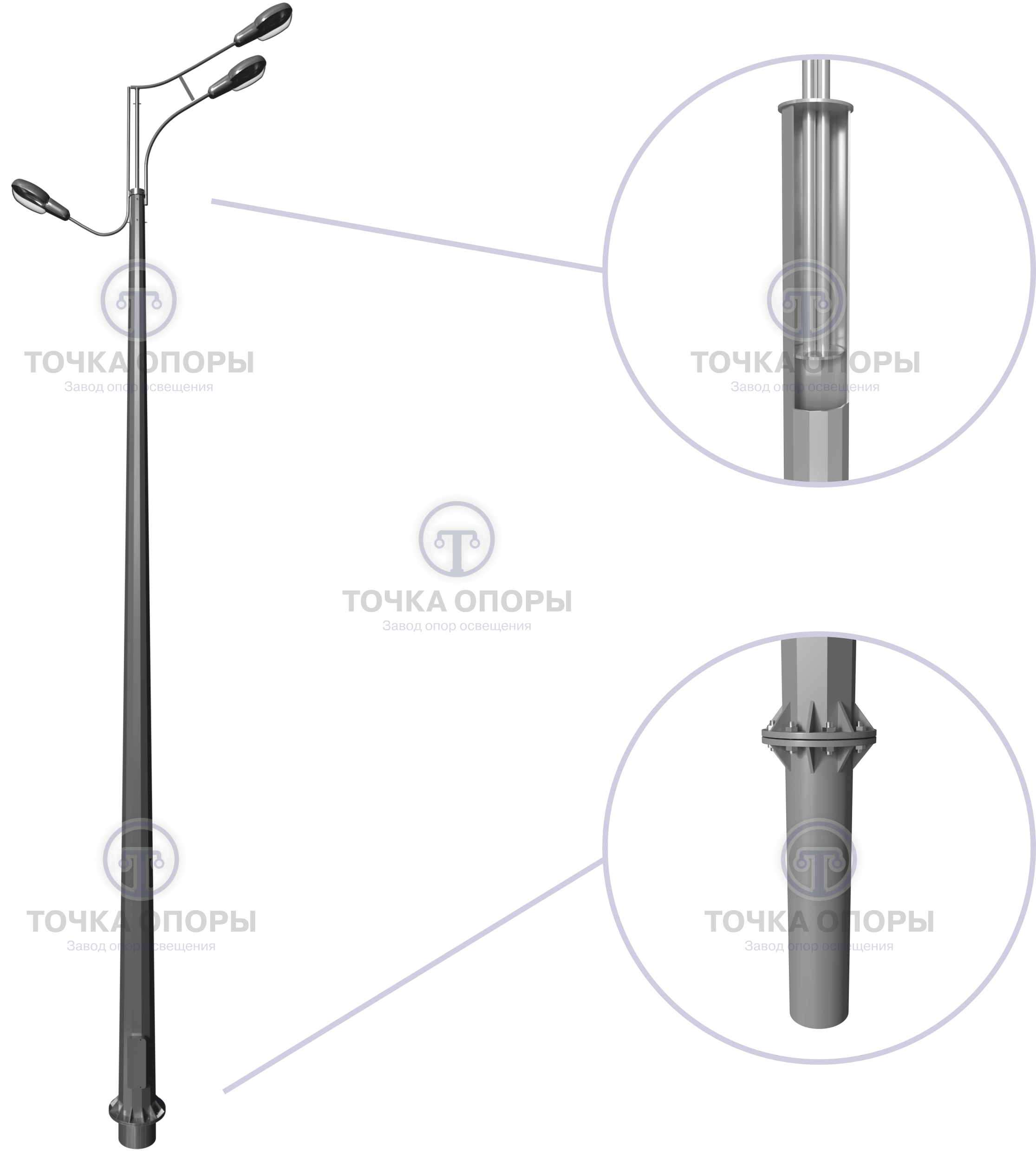 Завод опор освещения изготавливает и поставляет опоры и мачты освещения с комплектующими, необходимыми для